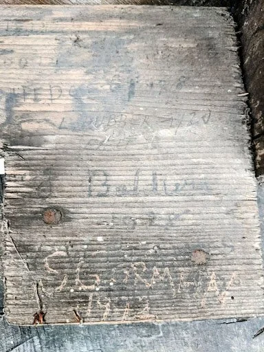 Workers’ signatures, early 20th century – in the roof at the south end of the building